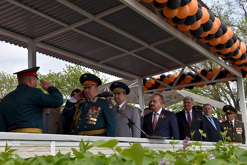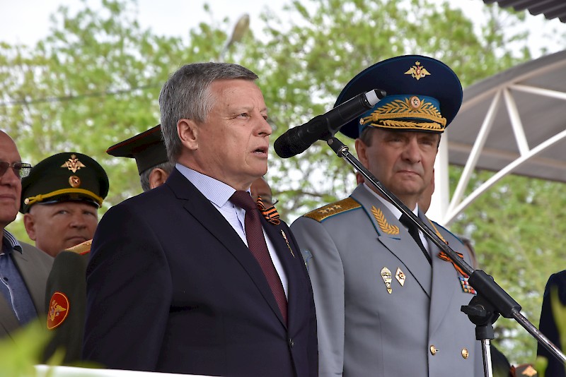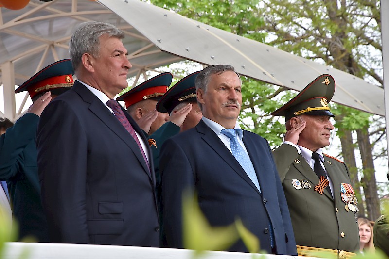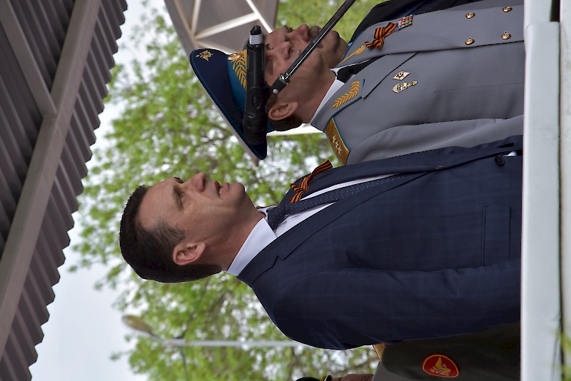 В торжестве приняли участие: заместитель полномочного представителя Президента РФ в ЮФО Герой Российской Федерации Сафронов Анатолий Александрович, заместитель Губернатора Ростовской области Корнеев Михаил Викторович, ректоры и проректоры вузов города, студенты. РГУПС представляли: проректор по научной работе А.Н. Гуда, начальник факультета военного обучения А.А. Хрусталев и начальник Учебного военного центра Д.И. Коцило, офицерский состав.