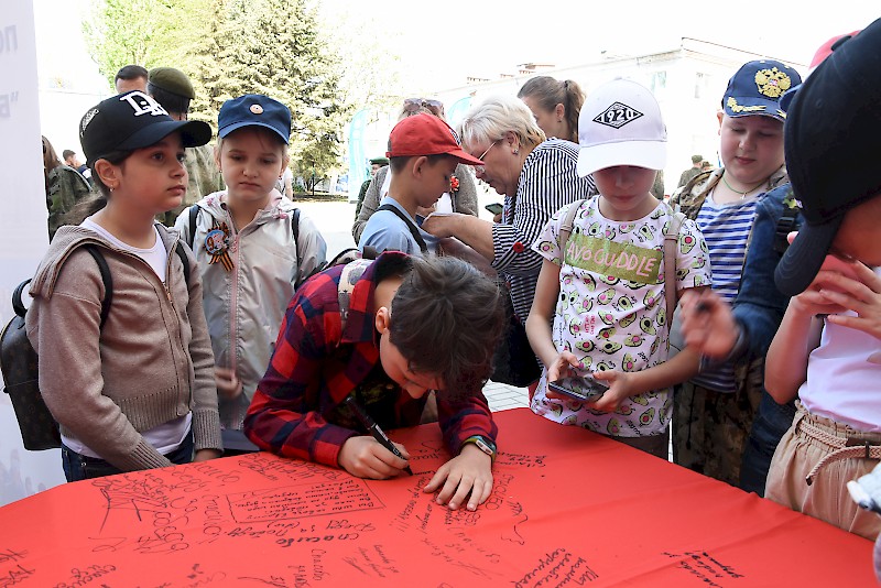Волонтёрами РГУПС проведена акция «Полотно Победы», подготовлена экспозиция «Воспитать гражданина-патриота».