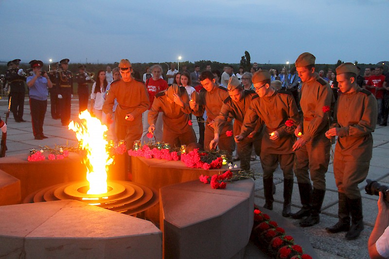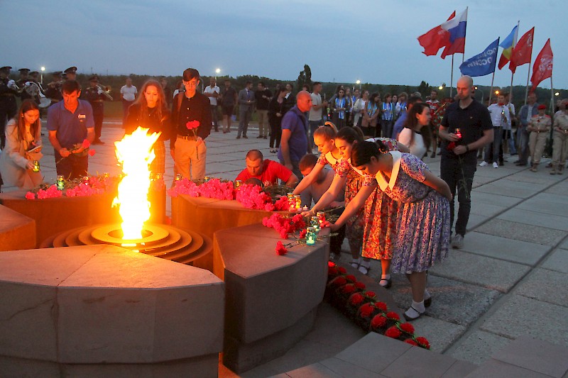 Памятные мероприятия принято проводить на рассвете. У мемориала на Самбекских высотах собрались молодые активисты и общественники, творческие коллективы. Прошел митинг с элементами концерта.