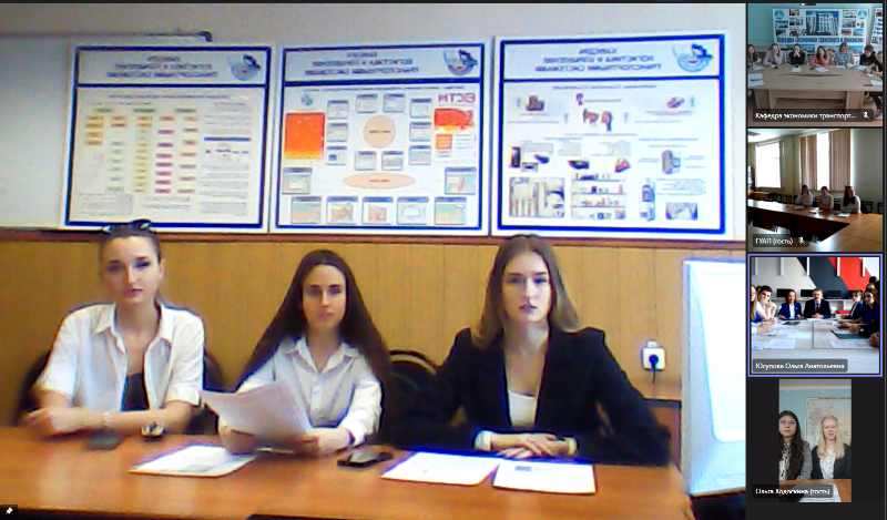 С докладом на тему «Анализ беспилотных технологий на территории России, проблемы и направления их развития» выступили студенты факультета Управление процессами перевозок Клейменова Евгения, Сидоренко Александра и Кузнецова Анна, который получил у аудитории большой отклик в виде вопросов и комментариев. В ходе телемоста была проведена дискуссия, рассмотрены актуальные проблемы развития транспортной инфраструктуры, инновационных технологий на всех видах транспорта. Общение со студентами других вузов и обсуждение актуальных вопросов в режиме онлайн, помогает студентам сформировать устойчивые компетенции в новых отечественных транспортных технологиях.