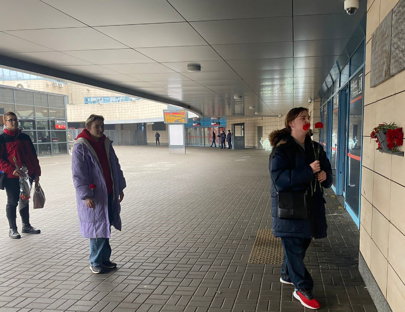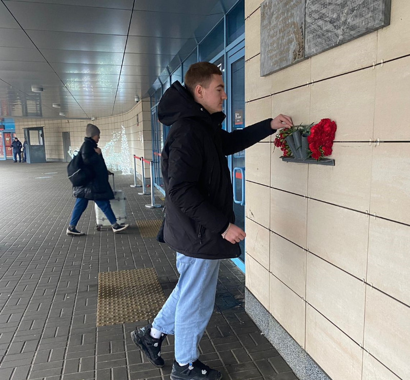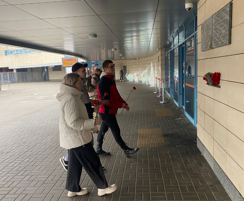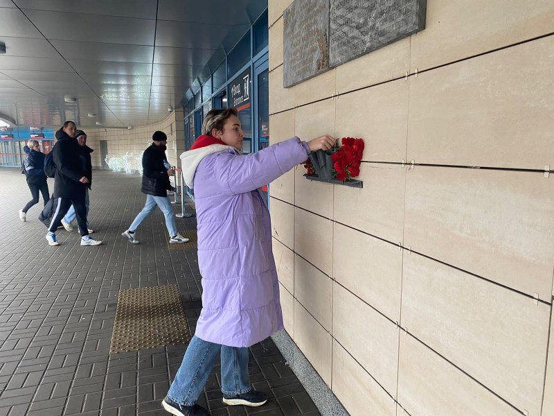 Студенты техникума РГУПС почтили память чекистов, возложили красные гвоздики к Памятной доске воинам-чекистам на железнодорожном вокзале Ростов-Главный
