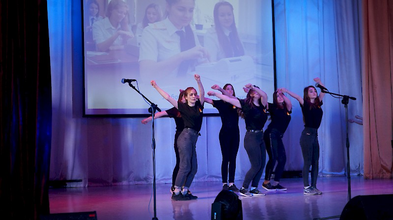 После посещения выставки-презентации специальностей, школьники познакомились с творческой жизнью студентов университета. Коллектив художественной самодеятельности техникума выступил с концертной программой.