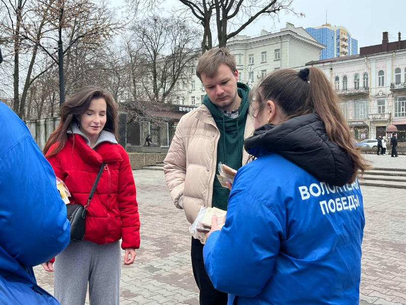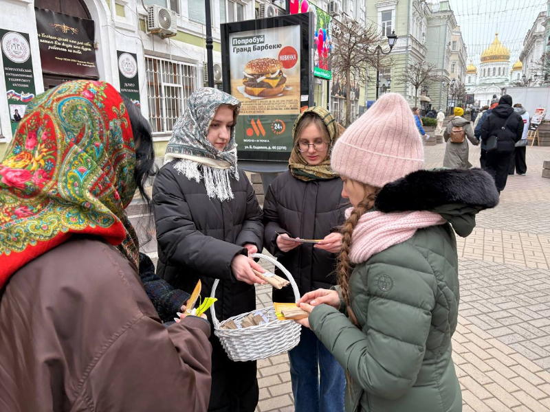 81 год назад город-герой Ленинград был полностью освобожден от фашистской блокады. Акция «Блокадный хлеб» напоминает о мужестве и стойкости мирных жителей Ленинграда. Студенты раздали информационные листовки и предложили жителям города Ростова-на-Дону принять символ нашей акции — кусочек хлеба весом 125 граммов. Это была минимальная норма выдачи хлеба в трудный период блокады – зимой 1941-1942 годов.