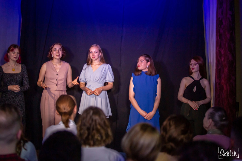 Это был камерный бенефис пяти выпускниц этого года, каждая из которых исполняла поэтическое или прозаическое произведение, с которым получила призовое место на фестивале-конкурсе "Российская студенческая весна". Стихи или фрагменты авторства Е. Гришковца, М. Цветаевой, Р. Казаковой, С. Моновой, Д. Уэлч были дополнены интересными фактами и пояснениями к текстам. Необычный формат, при котором на этот раз зрители попали в пространство сцены и находились буквально в метре от актрис, придал событию атмосферу особой близости. Близости к искусству, которое делает нас лучше.