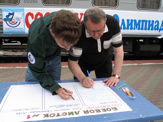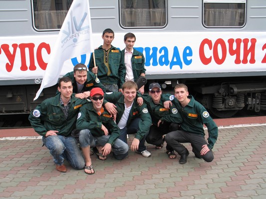 27 июня Ростовский государственный университет путей сообщения провожал 180 бойцов студенческих строительных отрядов на строительство олимпийских объектов в г. Сочи.