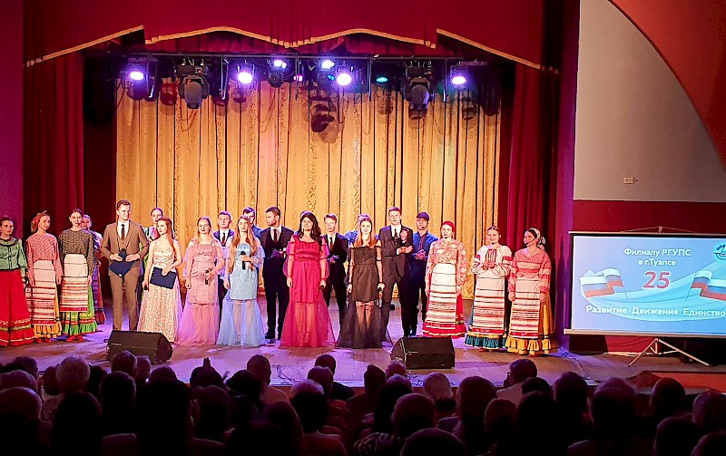Фольклорный ансамбль "Любава" (рук. Г.И. Кирсанова), народный вокальный ансамбль "Успех" (рук. А. А. Компаниец), участники театра "Universum" (выступившие в роли ведущих), вместе с режиссером концерта Е. А. Ткаченко создали по-настоящему праздничную, торжественную атмосферу мероприятия. В праздновании приняли участие руководство РГУПС и филиала в Туапсе, почетные гости - представители ОАО "РЖД", муниципальных органов власти, предприятий города, студенчество, преподаватели и сотрудники филиала, руководство других филиалов университета. Все они и многочисленные зрители отметили особую атмосферу и душевность праздника, который благодаря онлайн-трансляции смогли посмотреть многочисленные выпускники РГУПС в разных городах. Трансляцию и техническое сопровождение обеспечил сотрудник Управления информатизации нашего университета А.В. Коноваленко и участники СО "Скотч" (рук. Е.С. Браун).