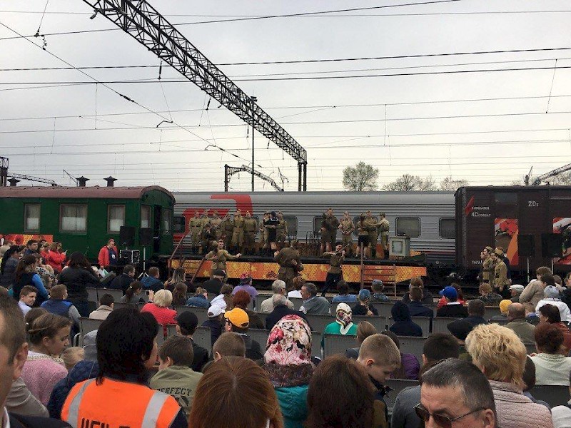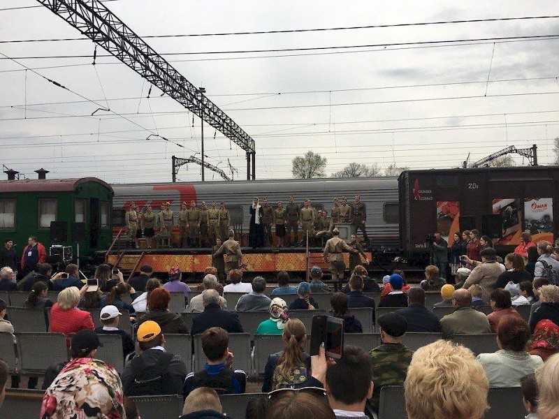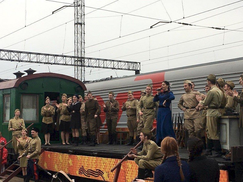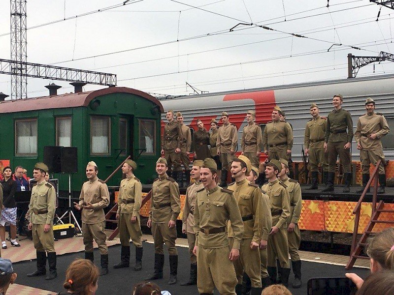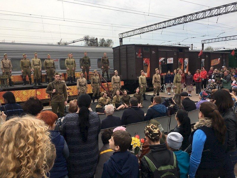 На перроне вокзала станции Староминская состоялось грандиозное театрализованное представление, в ходе которого зрителям были представлены концертные номера в исполнении студентов РГУПС – участников народного самодеятельного эстрадного вокального ансамбля «Успех», под руководством Компаниец А.А., творческих коллективов и исполнителей Дворца культуры железнодорожников на станции Ростов-Главный, активистов Молодежного движения "Дороги славы - наша история".