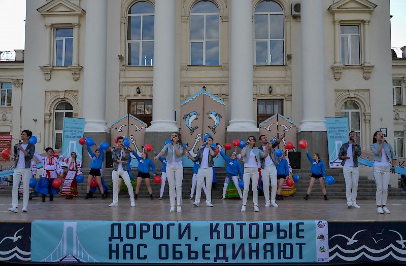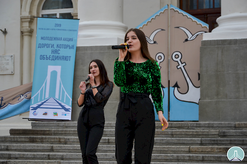 Но кульминационным событием этого дня и всей молодежной акции стал концерт студенческих коллективов на площадке перед Дворцом детского и юношеского творчества на приморском бульваре Севастополя. Словно свежий морской бриз летели над цветущим бульваром звонкие голоса наших артистов, широкой волной разливались песни с Тихого Дона, вовлекая прогуливающихся горожан в водоворот ярких эмоций, весеннего настроения и позитивной энергии. Каждый номер концертной программы зрители встречали аплодисментами, подпевали и пританцовывали. Своими спортивно-гимнастическими номерами поддержали участников акции юные артисты из детской демонстрационной команды Demo Team Sevastopol Kids. После окончания концерта воодушевленные зрители благодарили наших студентов за прекрасный праздник и приглашали приехать снова. Ярким впечатлением и волнующим событием останется в памяти участников акции Радушный прием жителей и гостей Севастополя.