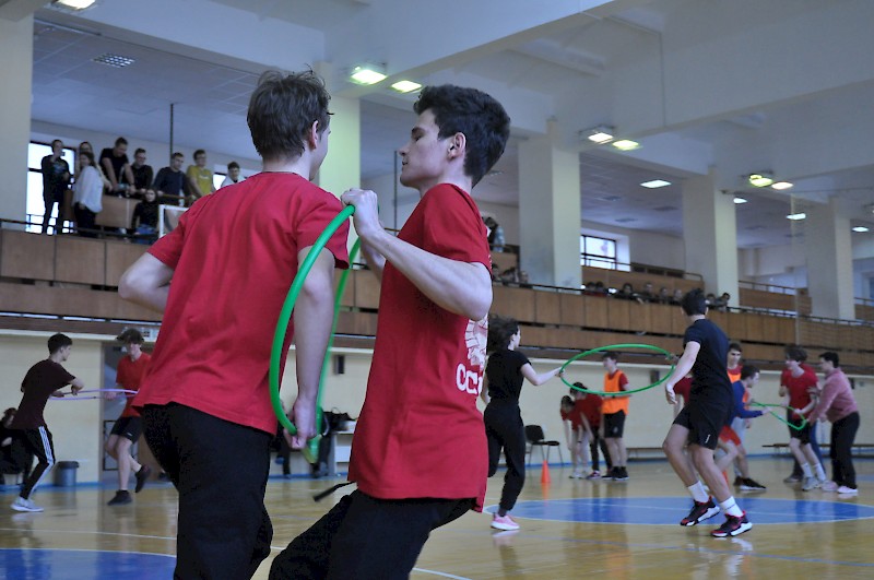 С целью привлечения учащихся лицея РГУПС к систематическим занятиям физической культурой и спортом, учителями физической культуры лицея, были проведены спортивные конкурсы « Веселые старты».