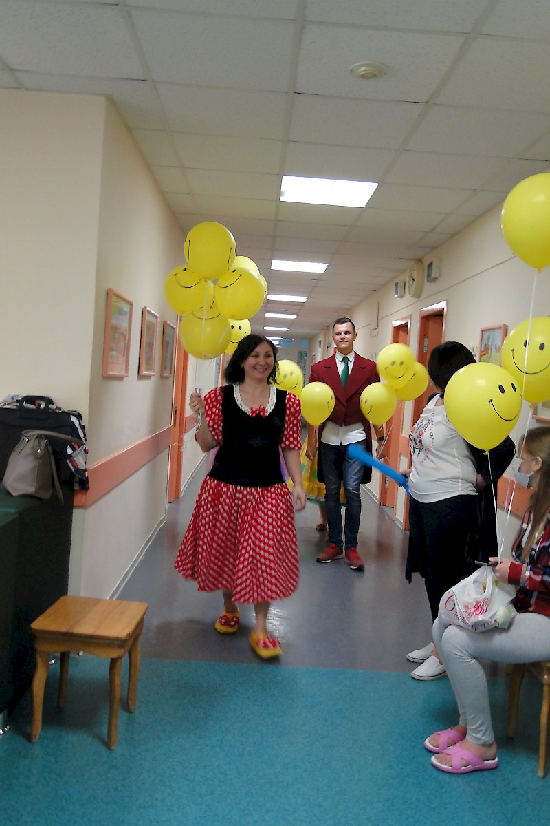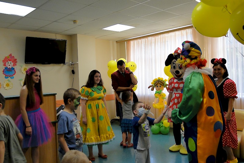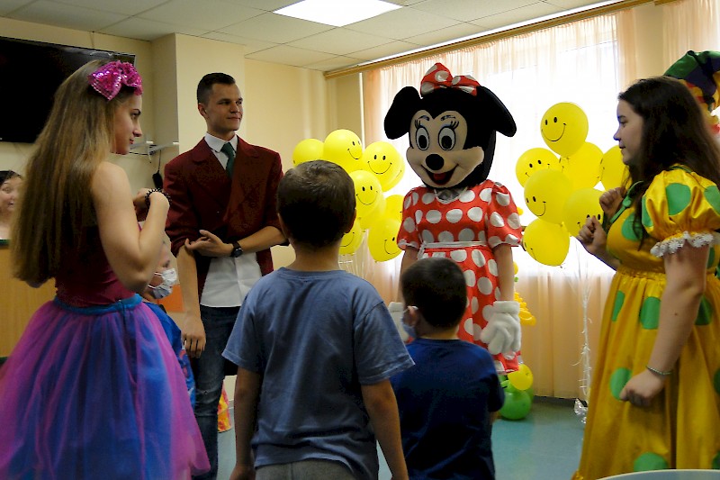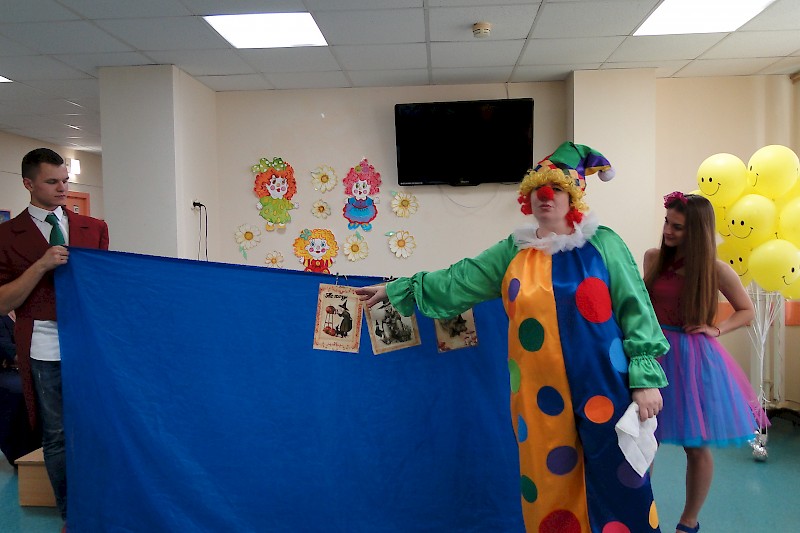 В День защиты детей волонтеры РГУПС, участники студенческой театральной студии «UNIVERSUM» посетили ГБУ РО «Отделение детской клинической больницы» (отделение детской онкологии) с развлекательной программой