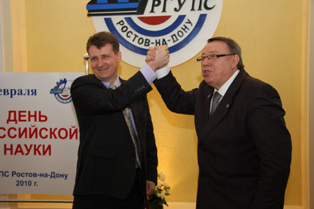 Традиционно встречи в научных кругах, посвященные празднованию Дня науки, подразумевают подведение итогов, вручение наград, обмен опытом и информацией о достигнутых результатах. Но сегодня - время стремительных перемен, эпоха модернизации, когда всем без исключения отраслям народного хозяйства, и, прежде всего, локомотиву российской экономики – железнодорожному транспорту - нужны актуальные перспективные проекты и инновационные разработки. Именно поэтому в Ростовском государственном университете путей сообщения в лабораториях, на кафедрах и факультетах прошли круглые столы «Наука в образовании», на которых ученые университета представили инновационные проекты научно-исследовательского сотрудничества с ОАО «Российские железные дороги».