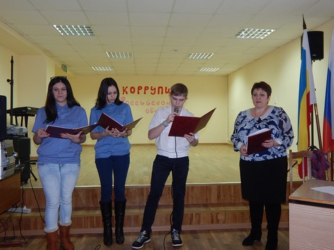 Организаторами мероприятия выступили студенты группы Д-21 (руководитель группы Шурупова Е.В). Тему для разговора студенты выбрали трудную, но очень актуальную. Несмотря на предпринимаемые меры, коррупция вызывает в российском обществе серьёзную тревогу и недоверие к государственным институтам, создаёт негативный имидж России на международной арене и правомерно рассматривается как одна из угроз безопасности Российской Федерации.