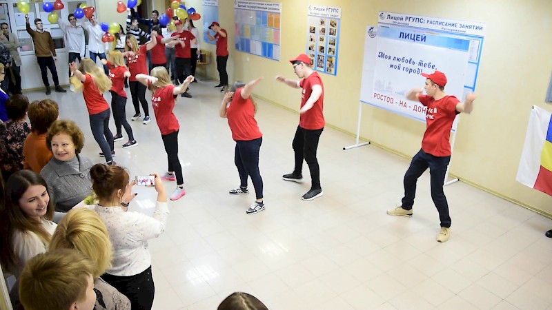 Инициативная группа лицеистов, провела флэш моб, посвященный 75-ой годовщине освобождения г. Ростова-на-Дону от фашистских захватчиков. Участники флэш моба и все присоединившиеся выразили свою любовь к родному городу и героям Великой Отечественной войны освободившим г. Ростов-на-Дону.