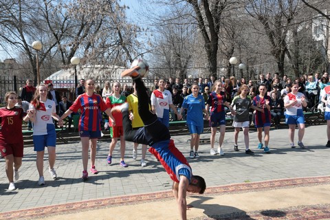 В ходе мероприятия был организован тематический флешмоб в поддержку здорового образа жизни, привлечены опытные фристайлеры, подготовлена выставка посвященная футболу.
