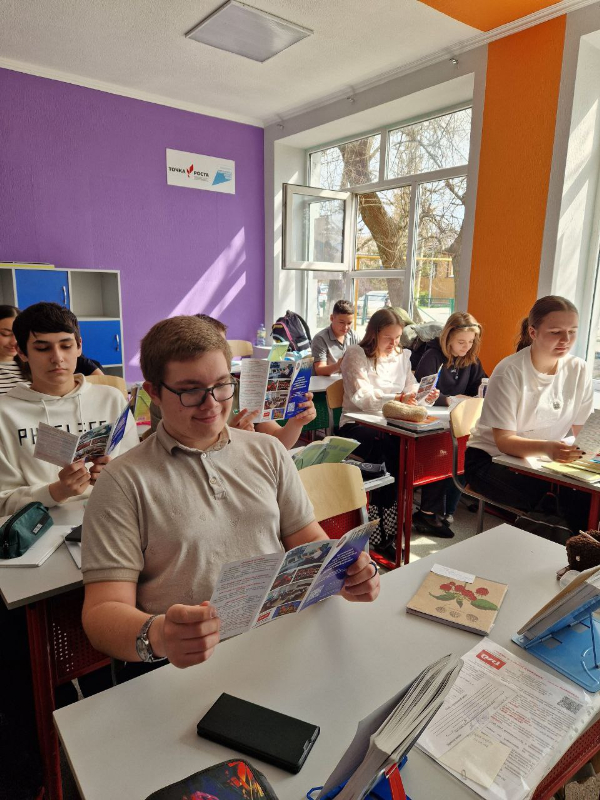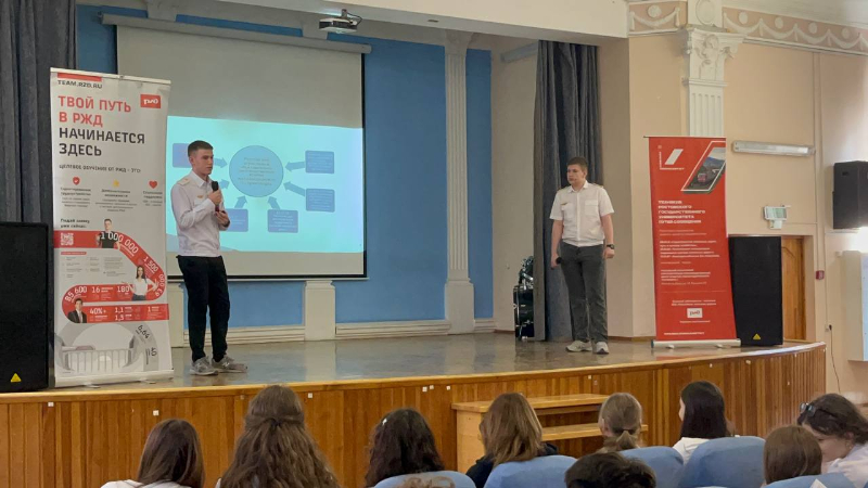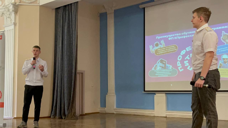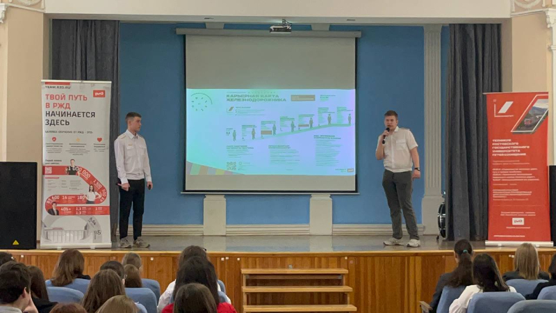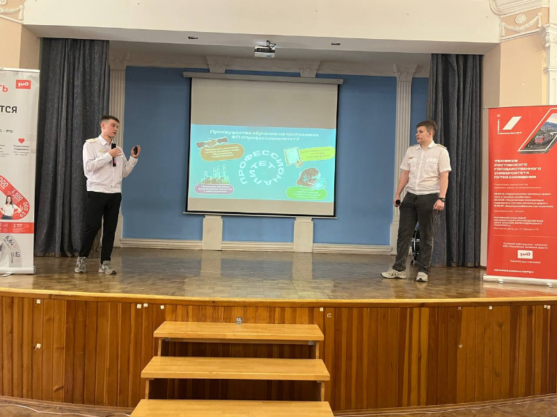 10 апреля Амбассадоры Профессионалитета в актовом зале техникума для 180 обучающихся школ № 14 и 106 города Ростова-на-Дону, а также лицея № 10 г. Батайска презентовали Ростовский отраслевой образовательно-производственный кластер железнодорожного транспорта, рассказали о том, чем занимается команда студентов техникума «Амбассадоры Профессионалитета», представили основного партнера проекта – компанию «Российские железные дороги» и карьерные карты железнодорожников, отражающие профессиональный рост выпускника техникума.