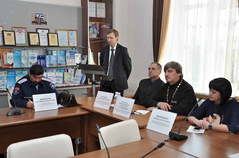 В работе круглого стола приняли участие настоятель храма Равноапостольной Ольги ст. Ольгинской митрофорный протоиерей Валентин Голиковский, настоятель храма Азовской иконы Божией Матери г. Азова протоиерей Александр Мирошниченко, настоятель храма Андрея Первозванного иерей Даниил Хохоня, руководитель Юридической службы Ростовской-на-Дону епархии А.Ю. Столяров, декан факультета «Экономика, управление и право» М.А. Каплюк, заместитель руководителя Регионального отделения ДОСААФ России в Ростовской области в сфере военно-патриотического воспитания молодежи В.В. Веревка, заместитель председателя Комитета по молодежной политике Ростовской области Т.С. Шевченко, руководитель военно-патриотического центра «Предтеченский городок» О.А. Стрельцов, помощник руководителя отдела по делам казачества Ростовской-на-Дону епархии Н.Н. Чубатов, советник атамана Ростовского округа по работе с Русской Православной Церковью, начальник штаба ГКО Ростовское, помощник проректора по воспитательной работе Донской духовной семинарии Е.Н. Димитров, а также преподаватели и студенты факультета «Экономика, управление и право» РГУПС.
