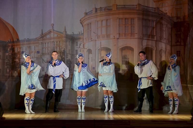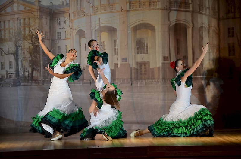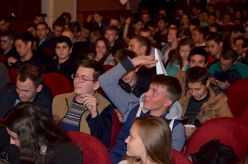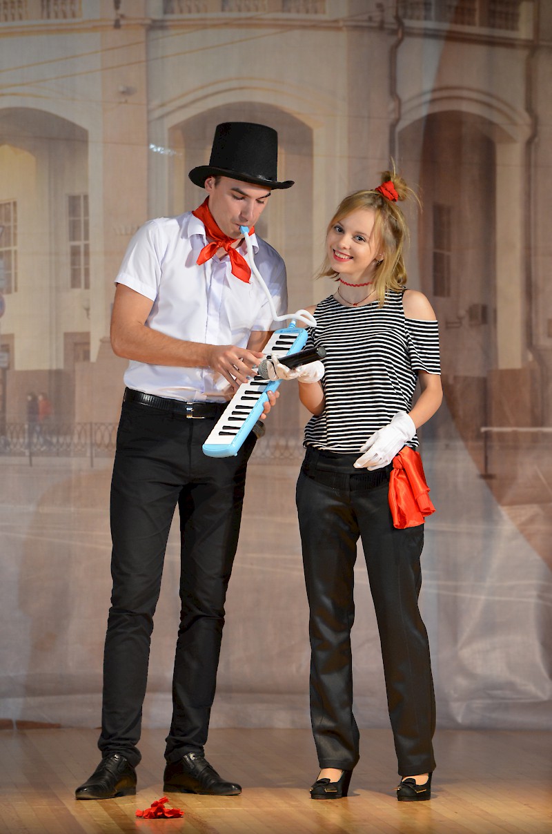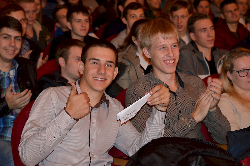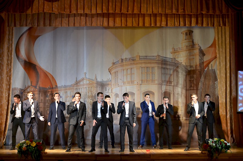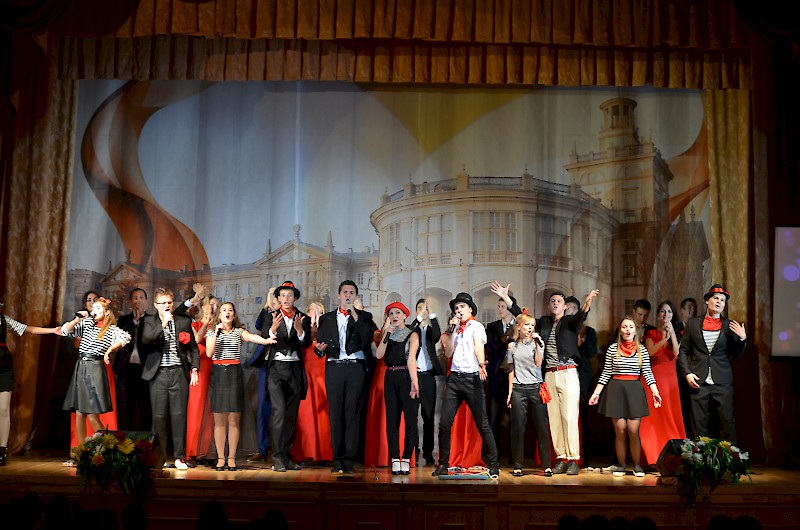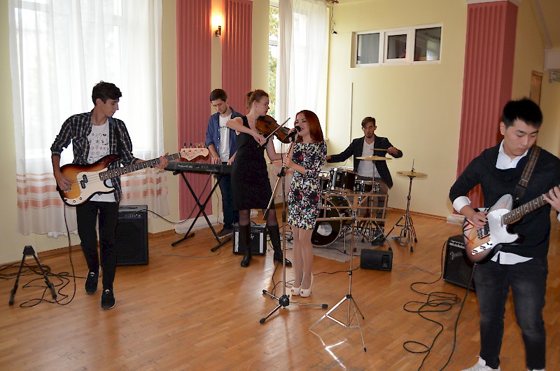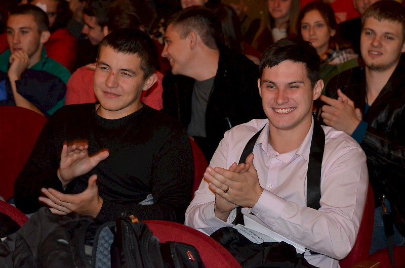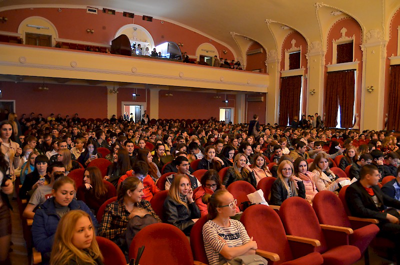 Первокурсников приветствовали: проректор по воспитательной работе и социальному развитию Е.Г. Шепилова и директор Дворца культуры О.А. Безуглая, пожелали ребятам сделать свою студенческую жизнь плодотворной, яркой и интересной, а вузе для этого есть прекрасные возможности. Творческие презентации своих коллективов представили: театр «Universum» - руководитель Евгения Ткаченко, ВИА Кросслайн – руководитель Анна Мартиросян, ансамбль бального танца «Энерджи» - руководитель Анастасия Рапутова, хореографический коллектив «Ажиотаж» - руководитель Анна Новоточенова, Народный фольклорный ансамбль «Жемчужина Дона» - руководители Таисия Разгуляева и Николай Колесников, фольклорный коллектив «Любава» - руководитель Галина Кирсанова, Народный вокальный эстрадный ансамбль «Успех»- руководитель Ася Компаниец. Участники Студенческого объединения «Скотч» - руководитель Алексей Крестьянников, пригласили первокурсников, интересующихся подготовков видеоматериалов, видеороликов, видео для сопровождения мероприятий вуза.