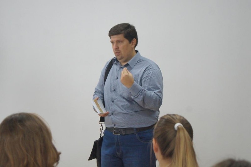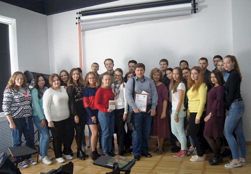 Для студентов 2-4 курсов Гуманитарного факультета специальности "Реклама и связи с общественностью" прошел мастер-класс на тему "Искусство самопрезентации". Ведущий мастер-класса – известный ростовский журналист, теле- и радиоведущий, руководитель пресс-центра «Комсомольской правды» в Ростове-на-Дону, автор книги «Не для печати» Владимир Добрицкий рассказал о том, как привлечь внимание аудитории, как грамотно построить самопрезентацию и для чего это нужно журналисту, рекламщику, простому человеку. Гость в студенческой аудитории в свойственной ему оригинальной и живой манере на примере 6 правил знаменитого сыщика Глеба Жеглова из фильма «Место встречи изменить нельзя» рассказал студентам о том, как важно быть высокообразованным, внимательным к людям, проявлять неподдельный интерес ко всему, что окружает, быть искренним. Соблюдая эти простые истины, убежден Владимир, успех, в том числе в профессии, будет обеспечен. Студенты слушали выступление Владимира Добрицкого с интересом, задавая вопросы, интересуясь профессиональными приемами журналиста, его личной биографией, его выбором профессии. В заключение встречи автор заметок «Не для печати» презентовал свою книгу одной из студенток Гуманитарного факультета, задавшей самый интересный вопрос. В завершении мероприятия было сделано фото на память. Студенты высказали пожелание снова встретиться с Владимиром Добрицким и еще больше узнать профессиональную «кухню» из уст яркого представителя ростовской журналистики.