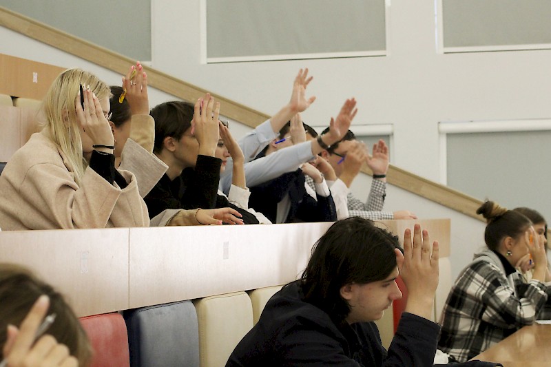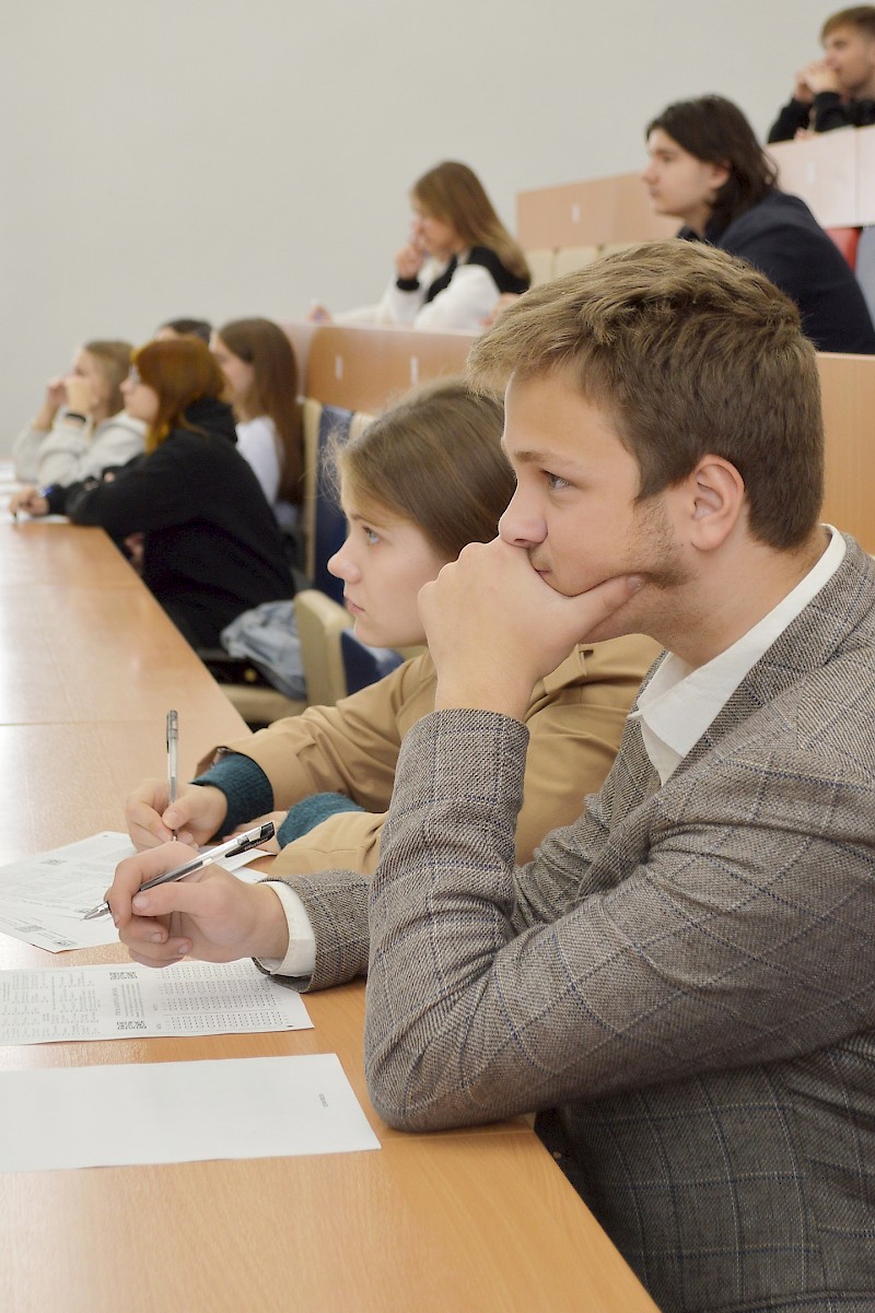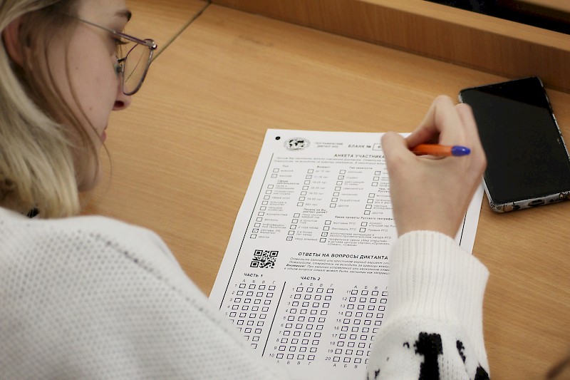 Участники диктанта с большим вниманием воспринимали видеопрезентацию вопросов и активно отвечали на них. Просветительская акция Русского географического общества прошла успешно, все участники уложились в отведенное время, а школьники и студенты колледжей были приглашены на встречу с деканом Гуманитарного факультета, который ознакомил будущих абитуриентов с направлениями подготовки бакалавриата.