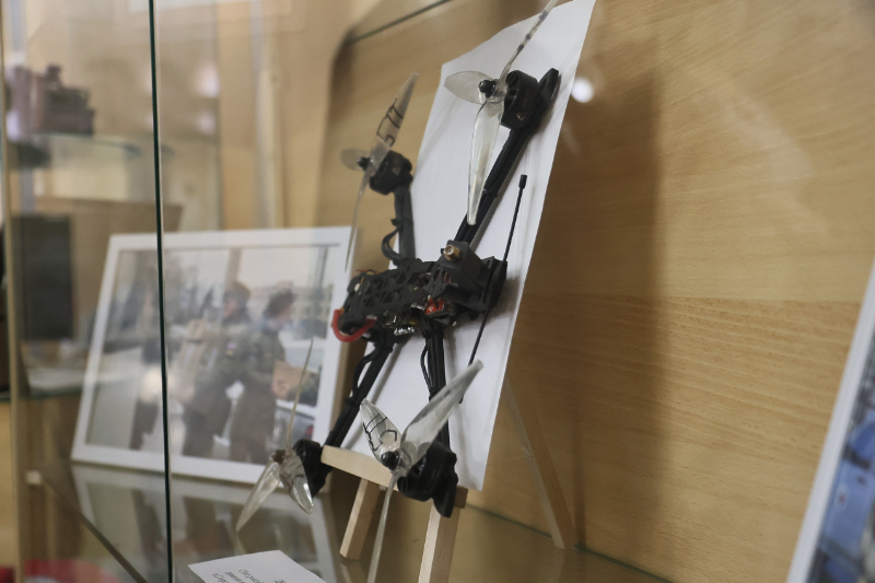 В выставочном комплексе университета открылась выставка «Время Героев», на которой представлены экспонаты трофейного вооружения из зоны специальной военной операции. Фотоматериалы, личные вещи и награды, размещенные на выставке, показывают участие студентов и выпускников в гуманитарной миссии по оказанию помощи бойцам – участникам СВО и мирным жителям.