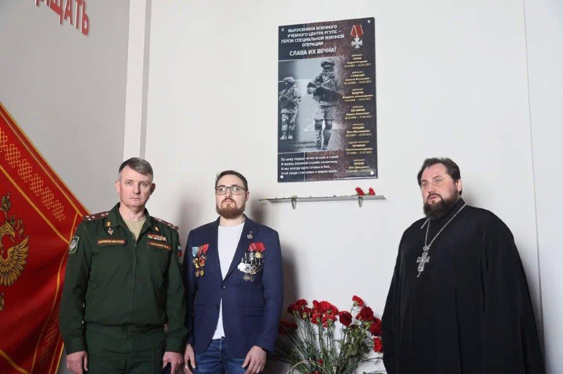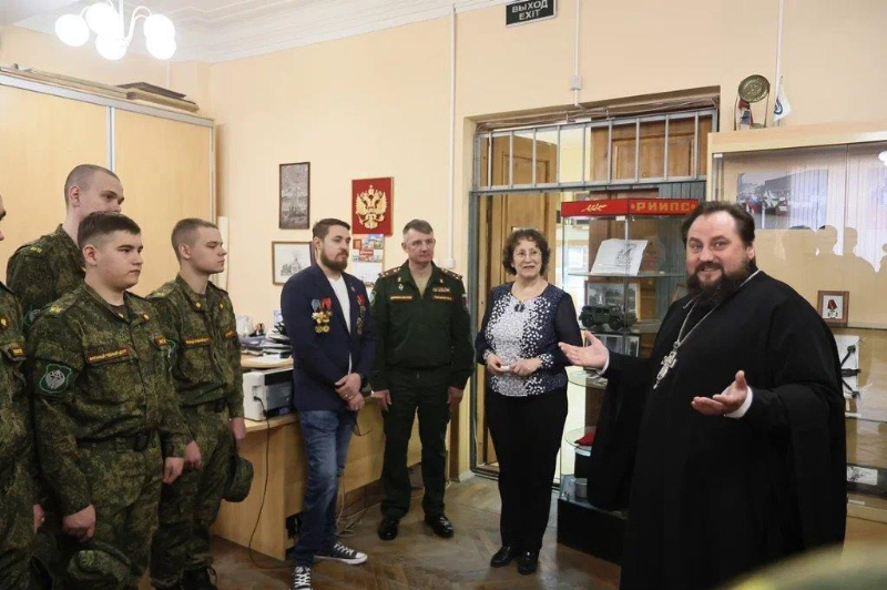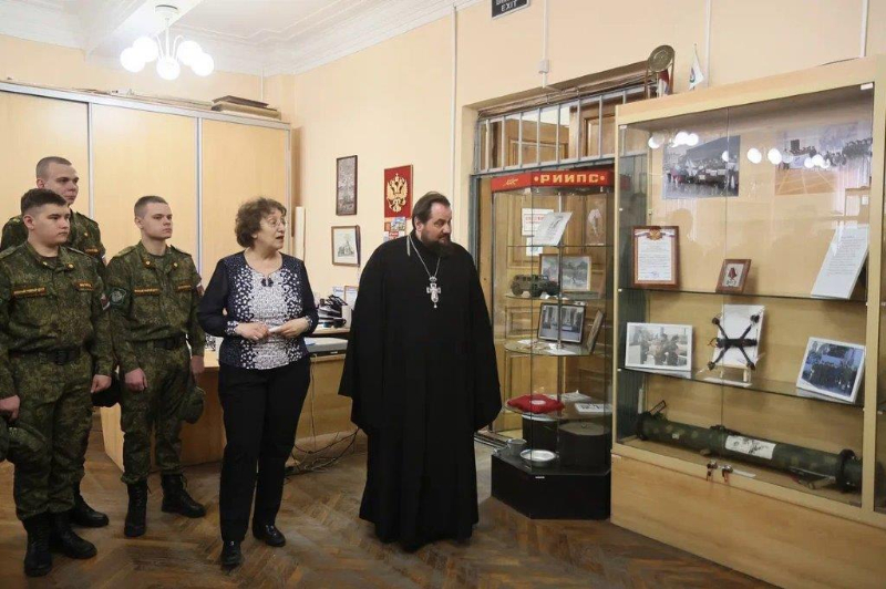 На открытии выставки присутствовали студенты и офицеры Военного учебного центра, ветеран СВО и войсковой священник.