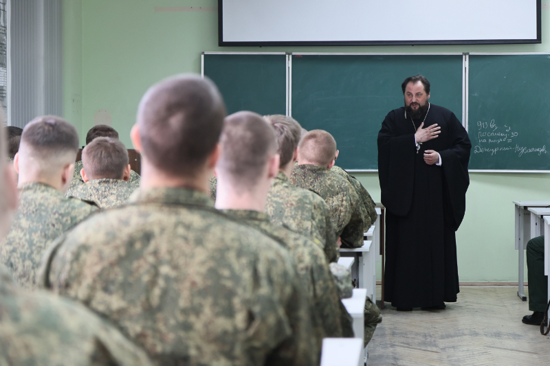 Отец Георгий рассказал об участии казаков Всевеликого войска Донского в СВО; о казачьих традициях; о вере, долге и мужестве наших земляков при исполнении присяги и воинского долга. А также пожелал удачи студентам вуза, принимающим участие в Параде Победы на Красной площади в составе казачьих подразделений.