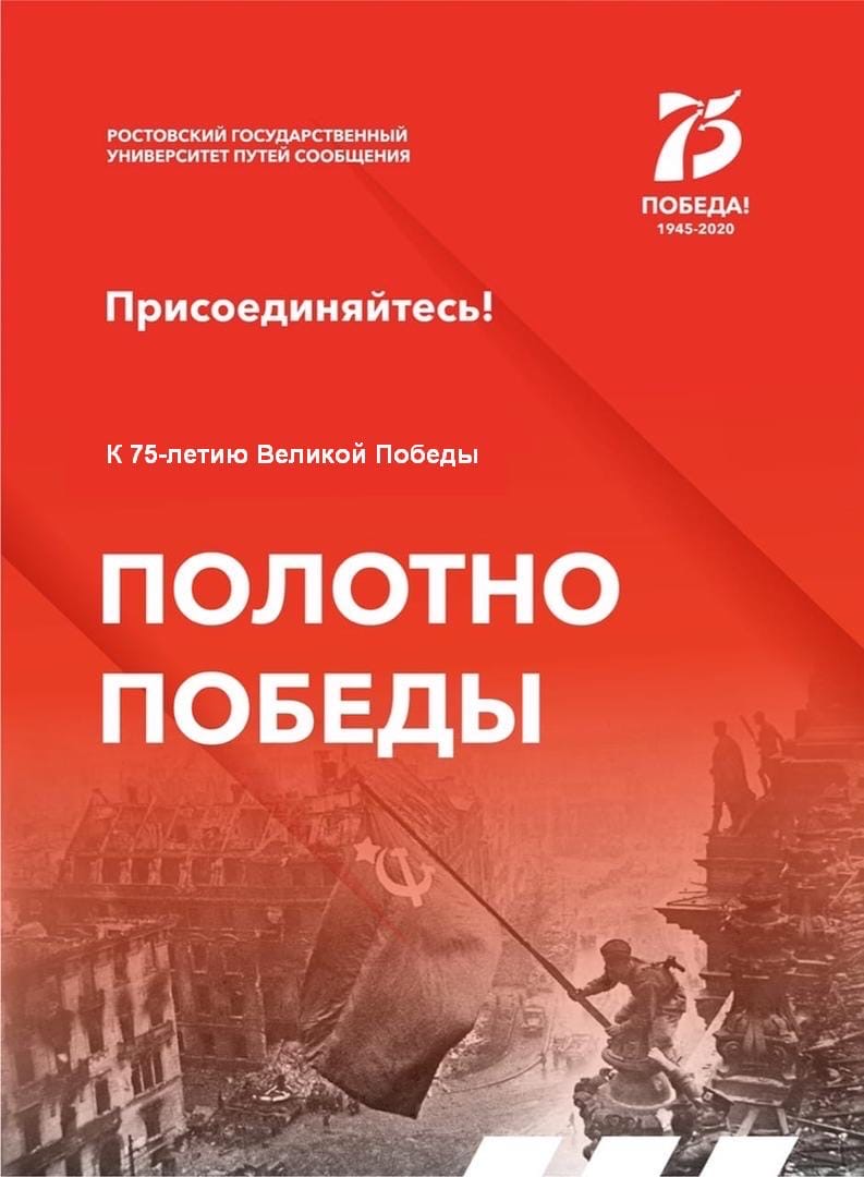 В Ростовском государственном университете путей сообщения продолжается онлайн акция «Полотно Победы». В ней уже приняли участие студенты, выпускники, преподаватели, работники, не только университетского комплекса, но и жители других регионов.