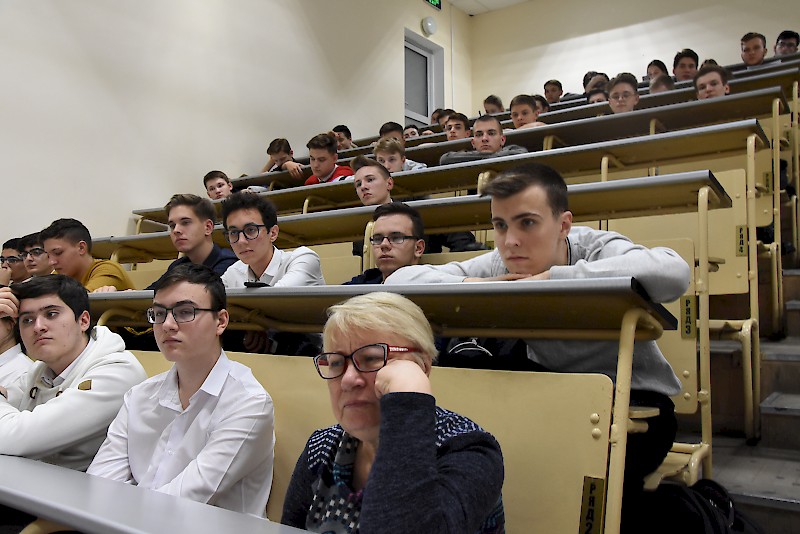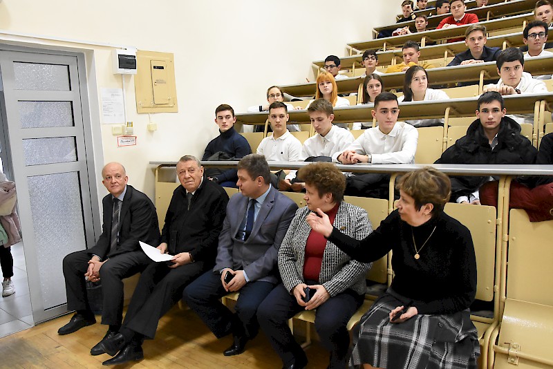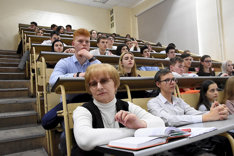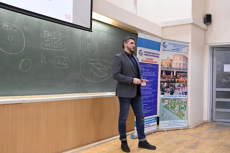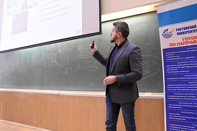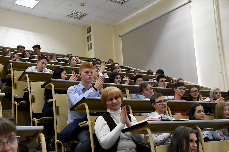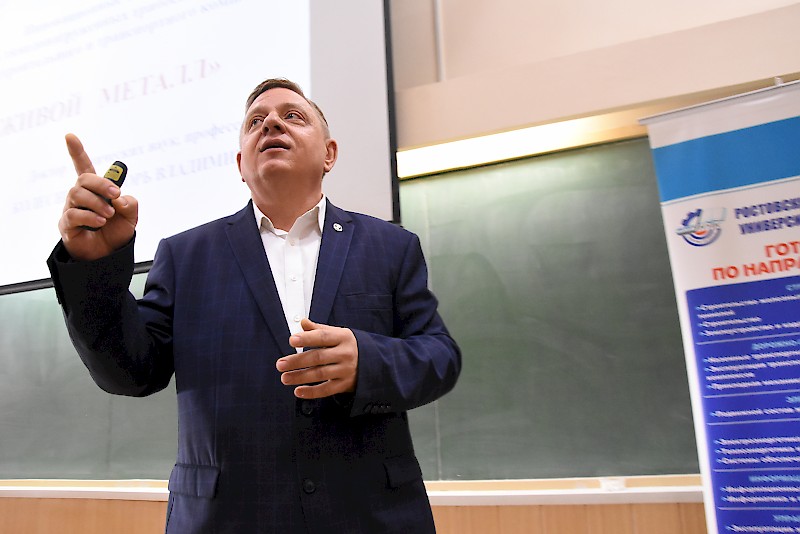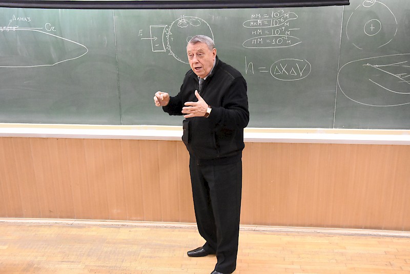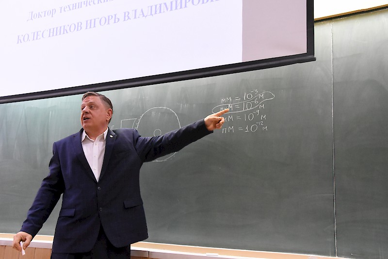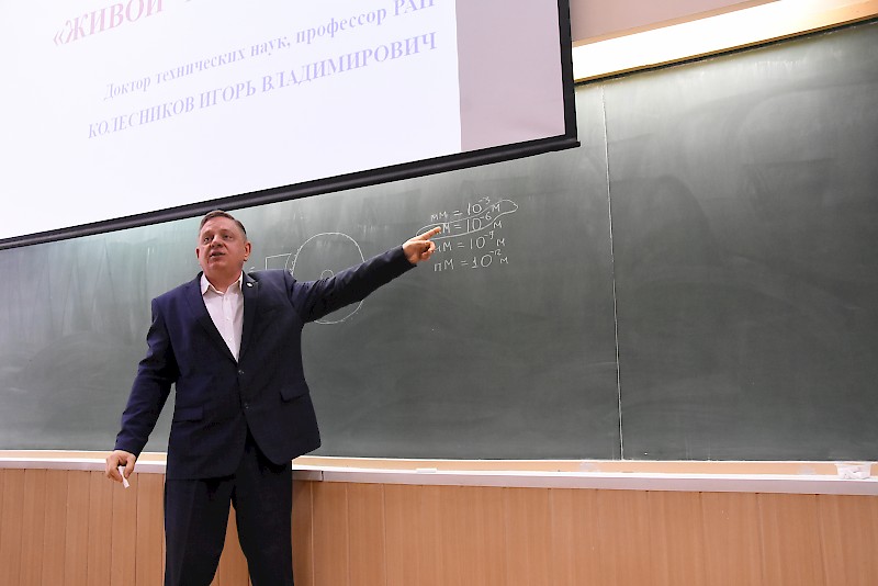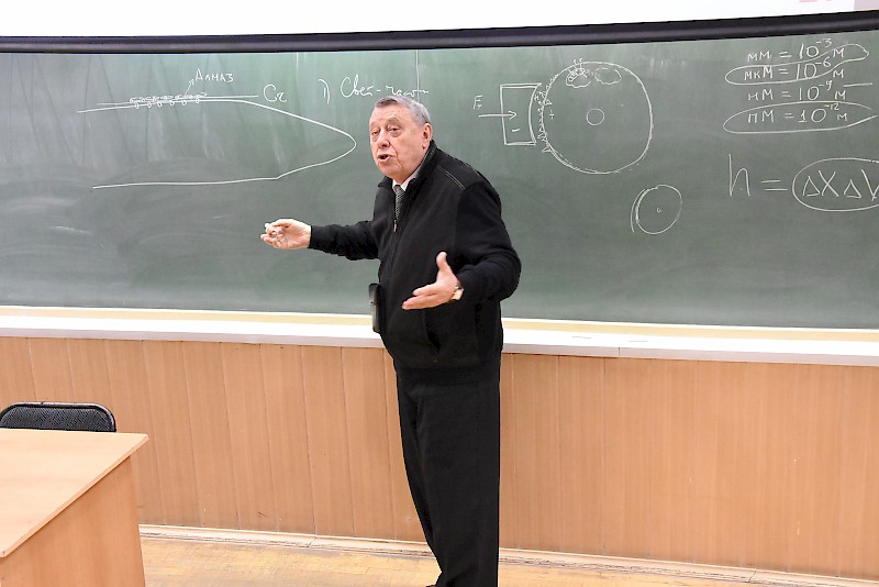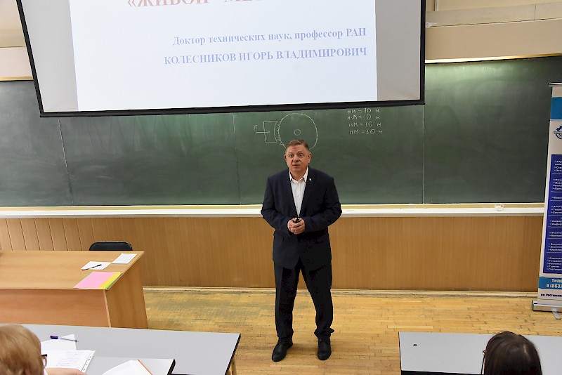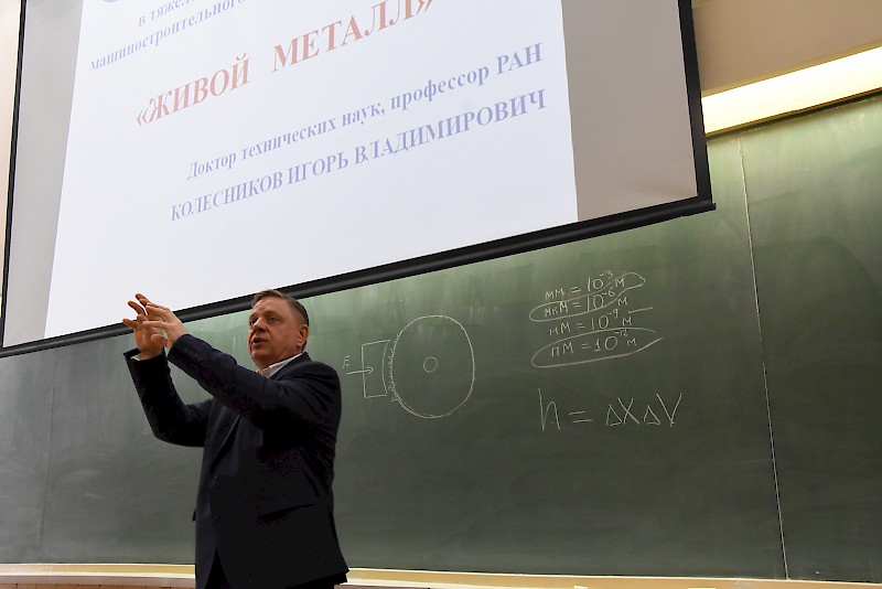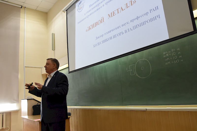 Встреча со старшеклассниками сопровождалась лекцией «Живой металл» профессора Российской академии наук Колесникова И.В. Он провел интерактивную лекцию о физических процессах происходящих в металле при воздействии различных нагрузок, а также рассказал об интересных научных разработках и планах отечественной науки.