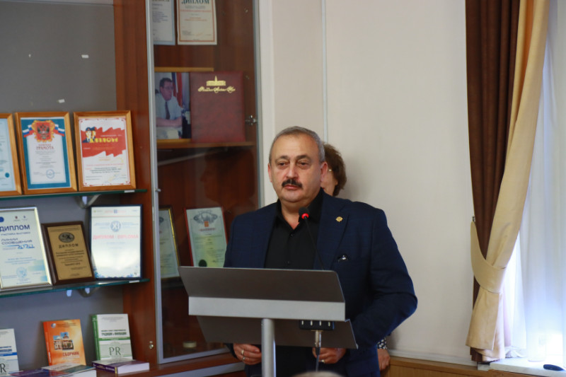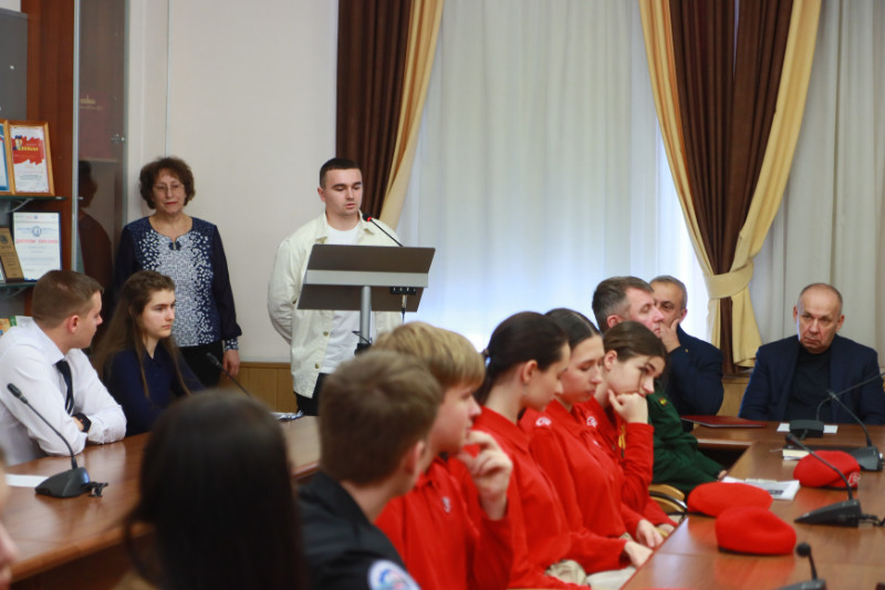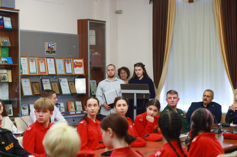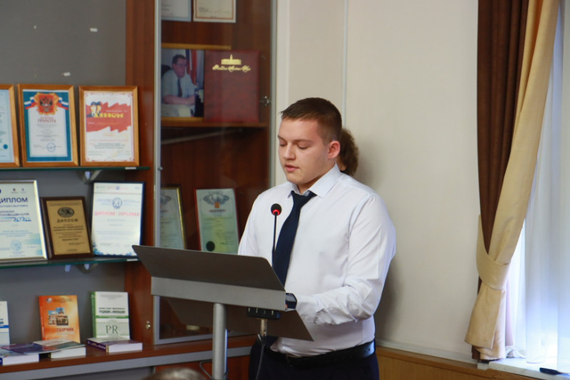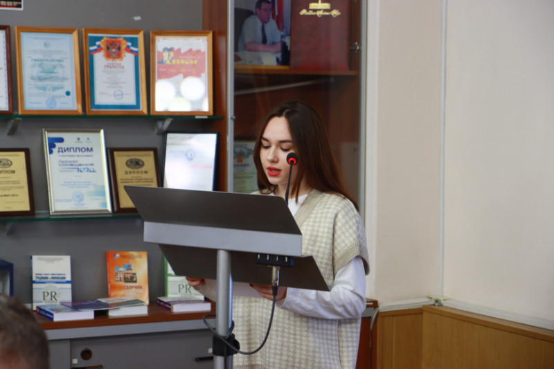 Об ожесточенных сражениях казачьих соединений Красной армии с казаками, служившими в вермахте, во время освобождения города представил свой материал студент И. Черкашев. О подвиге командира батареи Д. Пескова присутствующим рассказал М.Б. Смоленский - заведующий кафедрой «Теория государства и права», писатель, автор книг о героях Великой Отечественной войне.