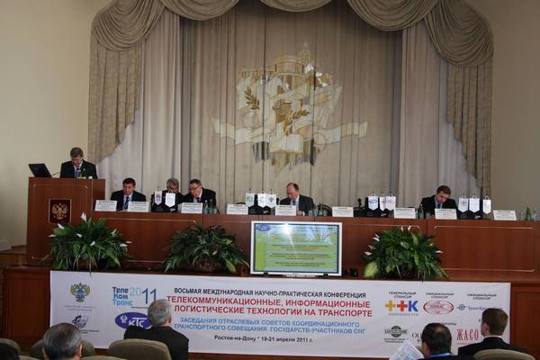 В Ростовском государственном университете путей сообщения прошла : Восьмая Международная научно-практическая конференция: «Телекоммуникационные, информационные и логистические технологии на транспорте (ТелекомТранс-2011)» и заседание отраслевых советов Координационного транспортного совещания государств-участников СНГ.