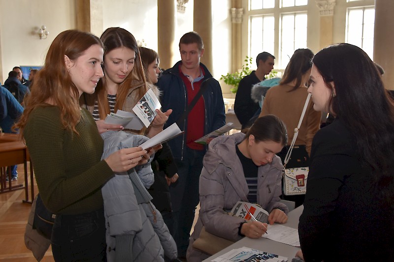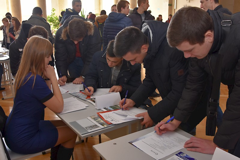 В своем приветственном слове проректор по внешним связям и производственной практике М.А. Каплюк и директор Ростовского городского центра занятости населения О.П. Заика подчеркнули значение социального партнерства в сфере образования как для ВУЗа, так и для работодателей. А затем, свыше 700 студентов университета, в том числе гуманитарного факультета, факультета «Экономики, управления и права», в настоящее время еще не определившиеся со своим трудоустройством, посетили «Ярмарку вакансий».