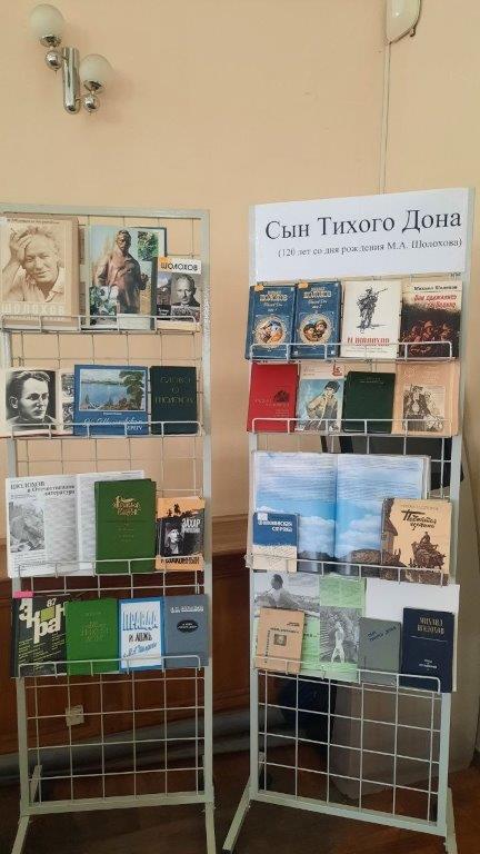 Директор научно-технической библиотеки Т.В. Ильяшенко, принявшая участие в мероприятии, представила собравшимся книжную выставку произведений М.А. Шолохова.