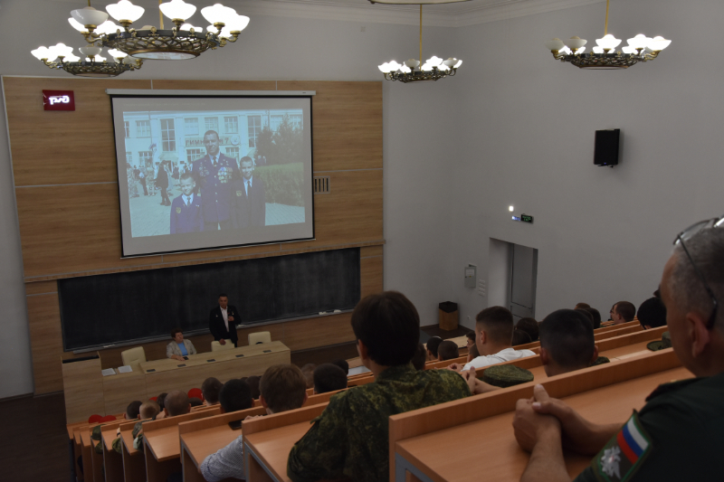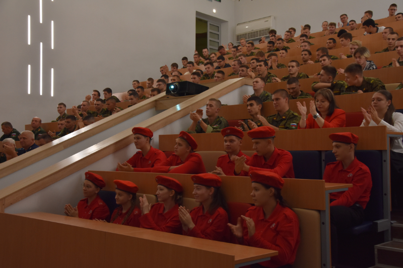 3 сентября, в День солидарности в борьбе с терроризмом в вузе прошла встреча студентов, слушателей и офицеров Военного учебного центра с военным летчиком, Героем России Валентином Анатольевичем Падалка. На встрече присутствовали юнармейцы – учащиеся 25-й гимназии г. Ростова-на-Дону.