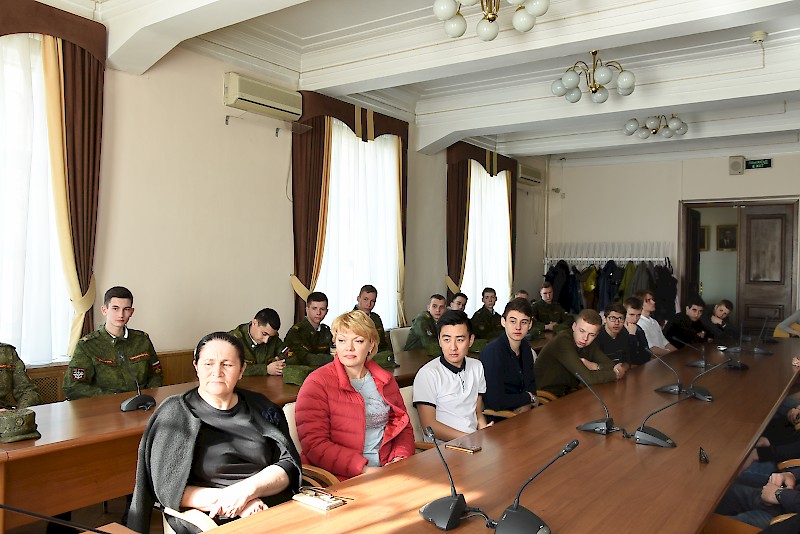 Студенты факультета «Дорожно-строительные машины» встретились с ветераном Великой Отечественной войны, участником советско-японской войны 1945 года В.Ф. Лаврентьевым. Владимир Филиппович желанный гость в нашем университете. Многие годы в праздничные февральские дни освобождения г. Ростова-на-Дону от немецко-фашистских захватчиков и дни Великой Победы он встречается со студентами первокурсниками, чтобы поделиться своими бесценными воспоминаниями о боевой молодости разведчика в годы Великой Отечественной войны, прошедшего путь от рядового до полковника, жизненным и трудовом опытом. Наш герой был отмечен многими правительственными наградами, но особенно дорога для него Медаль «За отвагу» (СССР), которой он награжден за поимку японского лазутчика в 1945 году в Маньчжурии. В апреле этого года Владимир Филиппович отметил свое 94-х летие, и конечно поражает его кругозор, знание политической и экономической обстановки в России, чувство юмора и огромная жажда жизни. Ребята с огромным вниманием и интересом слушали воспоминания В.Ф. Лаврентьева. Дорогому ветераны студенты посвятили песню, пожелали ему крепкого здоровья и долгих лет жизни.