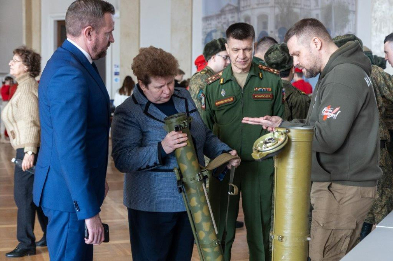 Экспонаты выставки вооружения и экипировки, применяемые вооруженными силами Российской Федерации в зоне специальной военной операции, были представлена социальным партнером вуза Общероссийским общественным движением «Народный фронт» при поддержке АНО «Центр развития интеллекта и технологий» и Военным учебным центром вуза.