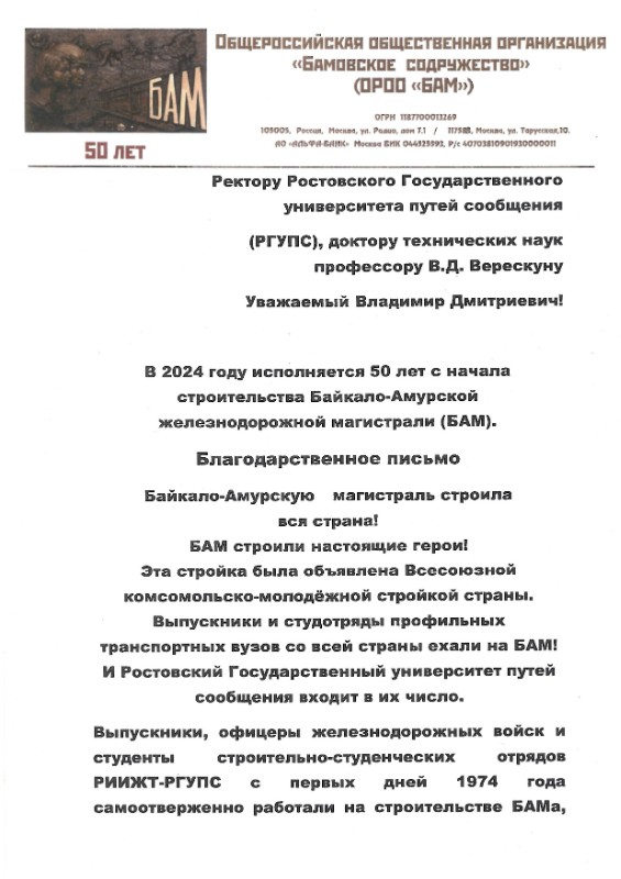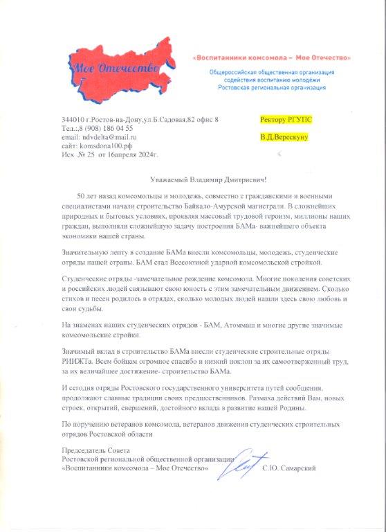 - Жданов А.Д. – руководитель Ростовского регионального отделения Общероссийской общественной организации «Бамовское содружество»;