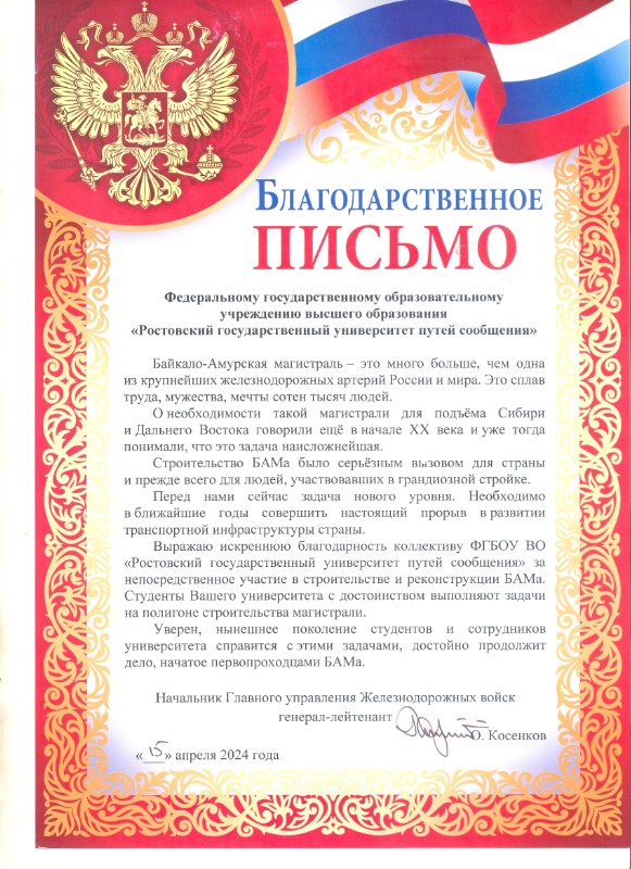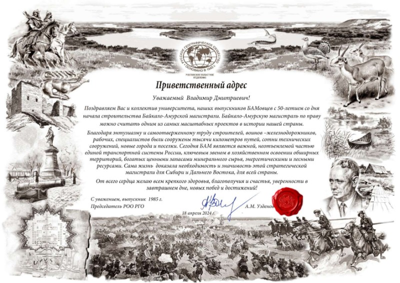 Приветственный адрес участникам мероприятия прислал выпускник РИИЖТа 1985 года, Руководитель Ростовского областного отделения Русского географического общества А.М. Узденов.