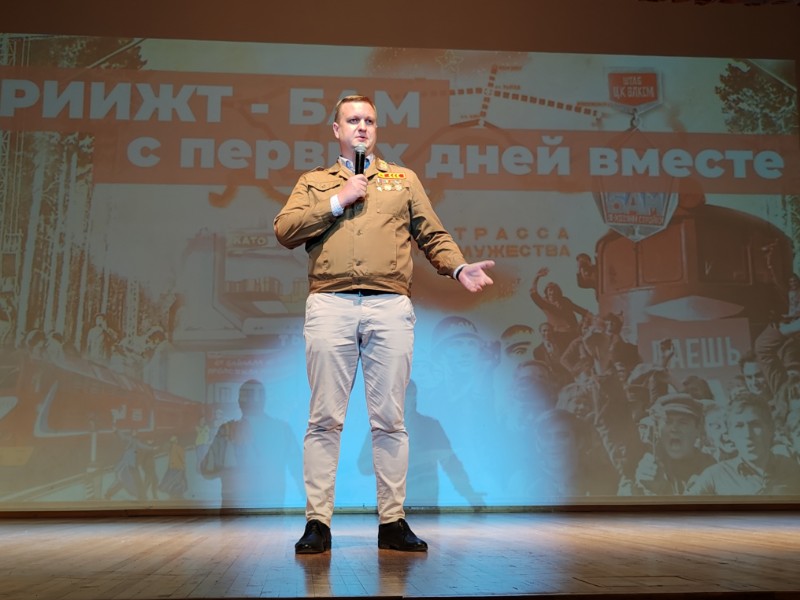 В зале Дворца культуры встретились выпускники вуза разных лет – участники строительства БАМа, комсомольцы и нынешнее поколение студентов – активисты, члены студенческих отрядов, слушатели военного учебного центра.