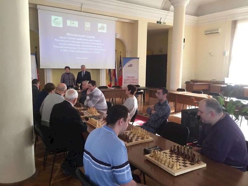 В РГУПС прошел шахматный турнир среди членов профсоюза работников Ростовского государственного университета путей сообщения, посвященный Дню Российской науки, 115-летию РОСПРОФЖЕЛ и 100-летию Дорпрофжел на СКЖД