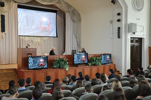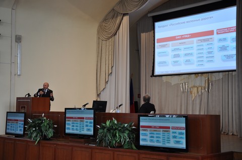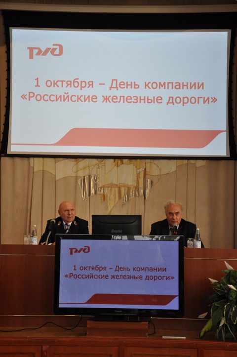 01.10.14г. День компании ОАО «РЖД» . В РГУПС состоялась открытая лекция начальника Северо-Кавказской железной дороги – филиала ОАО «РЖД», заведующего кафедрой «Логистика и управление транспортными системами» РГУПС Голоскокова Владимира Николаевича.