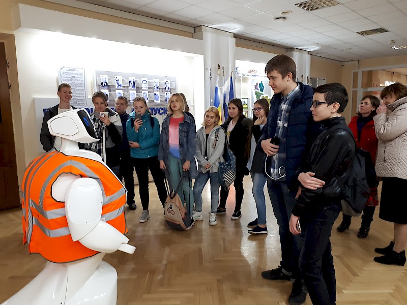 Учащиеся Детской железной дороги побывали на электромеханическом факультете, где смогли управлять тренажерными комплексами современных высокоскоростных поездов «Сапсан» и «Ласточка». Сотрудники отдела «Электроники и Робототехники» Центра развития инновационных компетенций познакомили ребят с роботом «Промоботом».