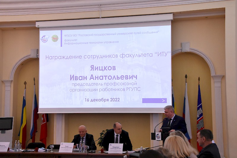 В честь юбилея факультета лучших сотрудников факультета ИТУ наградил председатель профсоюзной организации работников РГУПС И.А. Яицков.