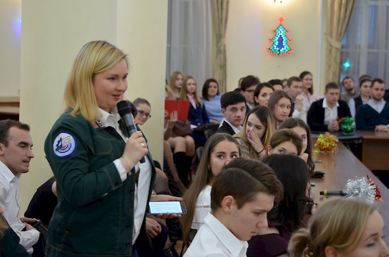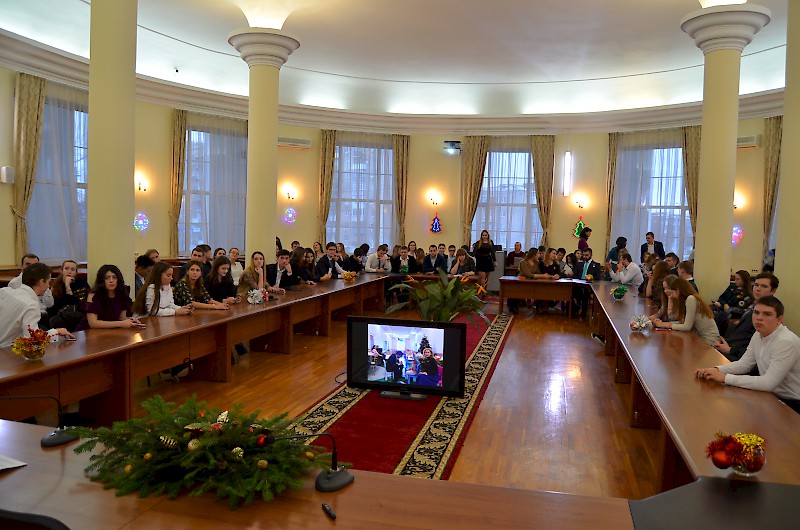 Ежегодно в предновогодние дни лучшие студенты вуза встречаются с ректором д.т.н., профессором Владимиром Дмитриевичем Верескуном. Эта встреча - разговор о том, как развивается университет, как живут студенты, их интересах и чаяниях, перспективах профессионального роста, и, конечно, проблемах. В читальном зале собрались более 100 самых активных и инициативных ребят: молодые ученые, стипендиаты Президента РФ, победители грантов различных конкурсов, участники образовательных и научных конференций, стройотрядовцы, спортсмены, активисты профсоюзного студенческого движения, волонтеры и разработчики социальных проектов проекта, участники художественной самодеятельности. На встрече присутствовали администрация вуза в лице проректоров, деканов факультетов директоров, техникума и лицея.