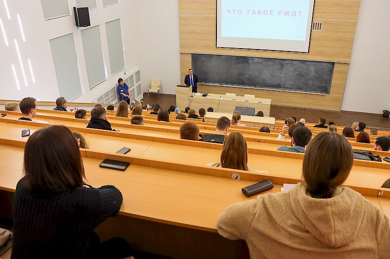 В ходе лекции студенты университета узнали о применении в работе Дирекции железнодорожных вокзалов новых подходов в вопросах повышения качества подготовки специалистов с высшим и средним профессиональным образованием – будущих работников ОАО «РЖД».