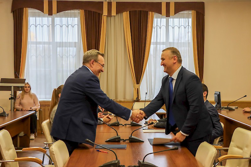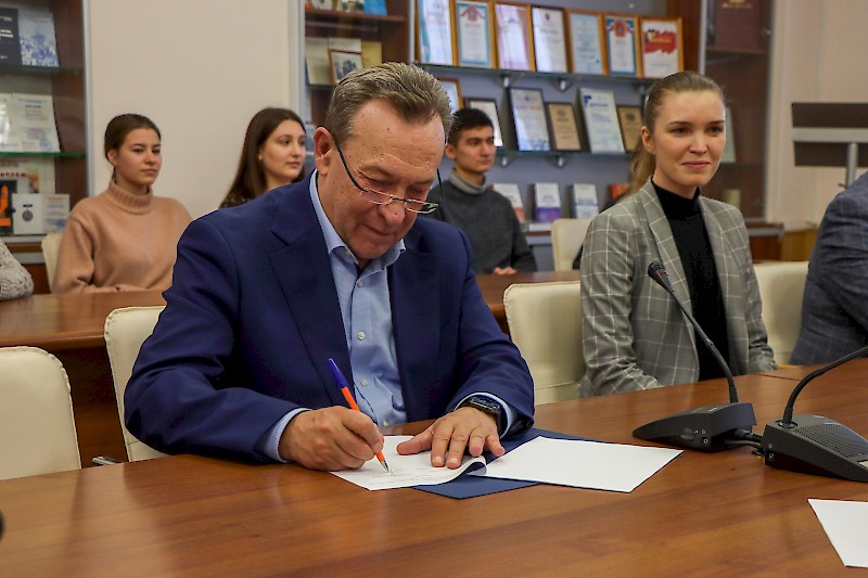 Важной частью посещения РГУПС явилось подписание начальником Дирекции железнодорожных вокзалов Г.А. Геворкяном и ректором университета В.Д. Верескуном соглашения о сотрудничестве, целью которого является установление долгосрочного (взаимовыгодного) сотрудничества.