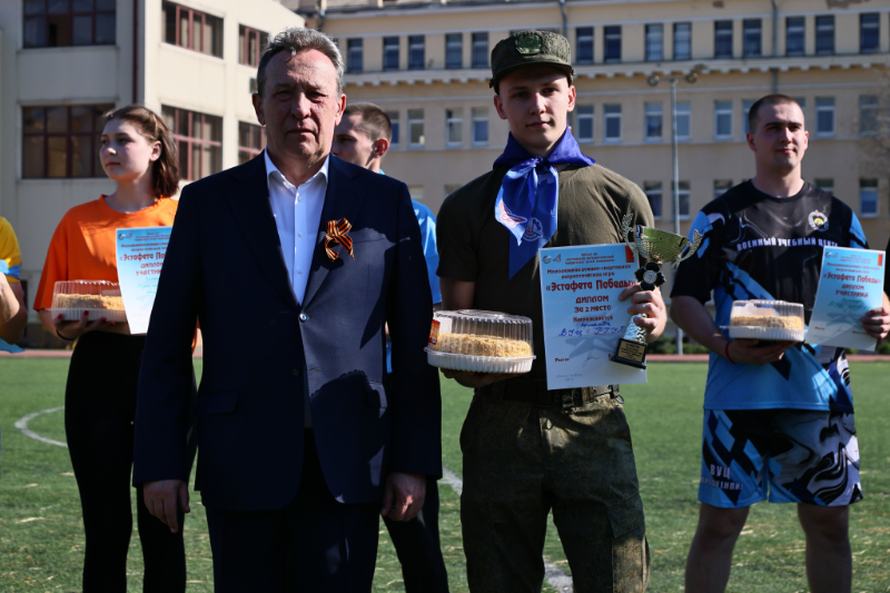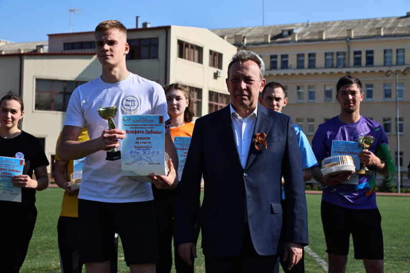 Торжественное награждение команд-участников «Эстафеты Победы» состоялось на стадионе университета, с вручением дипломов, кубков и сладких призов.