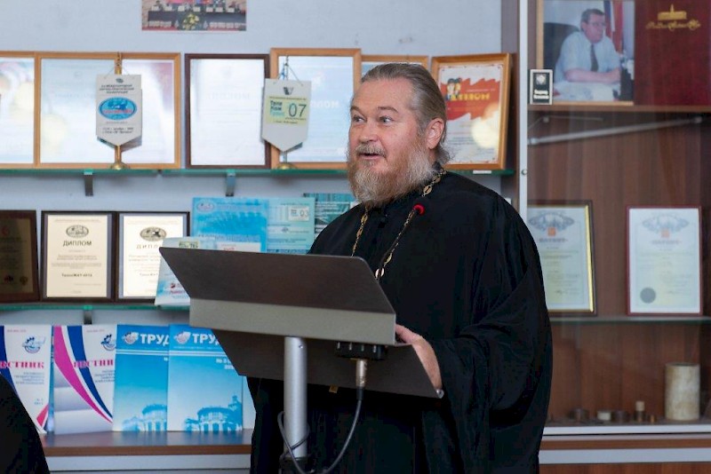 11 ноября 2019 года в Ростовском государственном университете путей сообщения состоялась секция XXIV Димитриевских образовательных чтений "Великая победа: изучая родословную своей семьи". Председателем секции выступил настоятель Иоанно-Кронштадтского храма иерей Владислав Паланчев. Сопредседатель - проректор по воспитательной работе и социальному развитию РГУПС Елена Григорьевна Шепилова. В секции приняли участие директор ГАУ РО "Центр патриотического воспитания молодежи Ростовской области" Павел Петрович Препелица, вице-президент межрегиональной молодежной общественной организации "Ассоциации почетных граждан, наставников и талантливой молодежи" Зинаида Петровна Болотова, руководитель Ростовского регионального патриотического общественного движения "Дороги славы - наша история" Ася Амбарцумовна Компаниец, заместитель председателя Ростовского регионального отделения Международной общественной организации "Императорское православное Палестинское общество" Александр Анатольевич Шиянов, ученики 8 класса школы № 79 в сопровождении администрации учебного заведения, активисты приходской молодежной общины Иоанно-Кронштадтского храма "Жизнь - во Христе", настоятель храма в честь иконы Пресвятой Богородицы "Всех скорбящих радость" протоиерей Вадим Толмачев, помощник настоятеля Иоанно-Кронштадтского храма по делам молодежи Елена Демиткина, представители управления воспитательной работы, преподаватели и студенты университета.