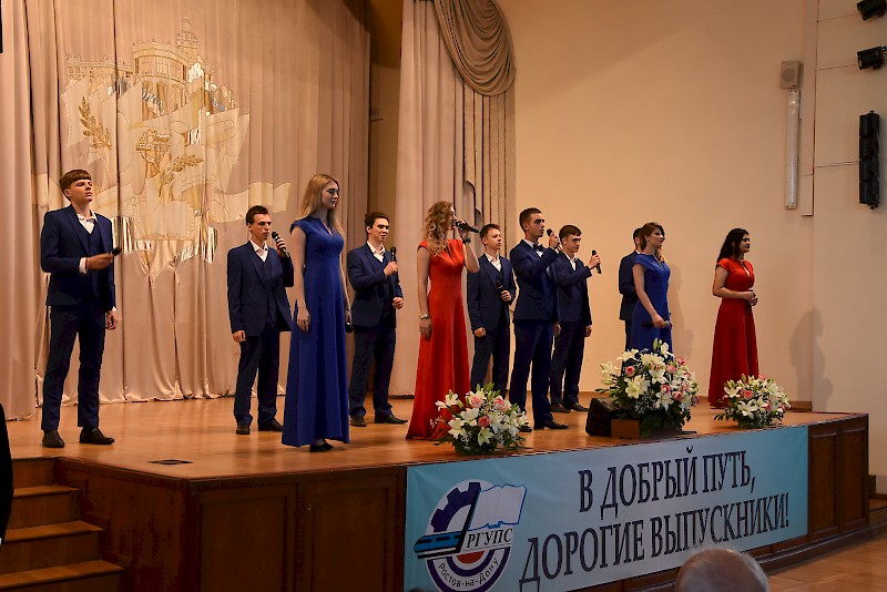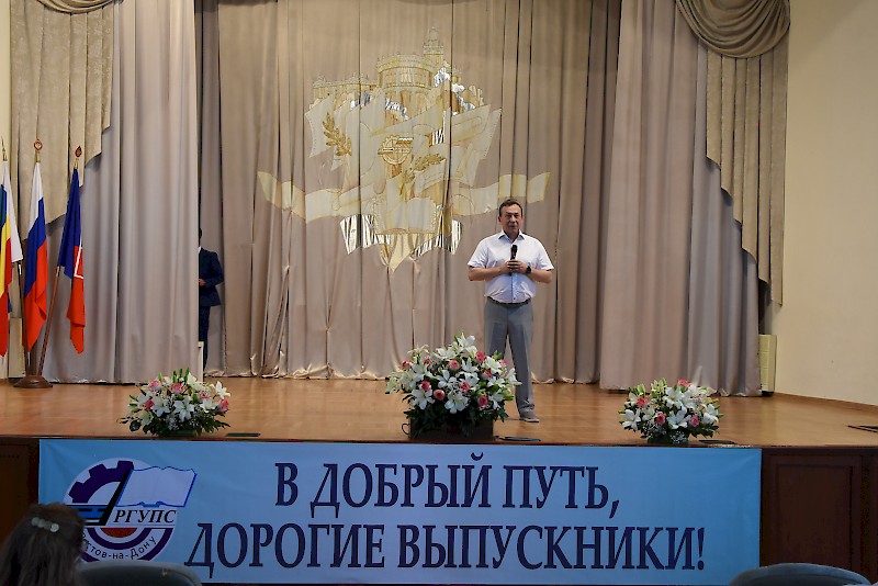 В праздничной церемонии вручения дипломов со словами напутствия выпускникам выступили: ректор РГУПС В.Д. Верескун, руководитель Южного территориального управления Росжелдора В.Н. Королев, Первый заместитель начальника СКЖД- филиала ОАО «РЖД» по экономике, финансам и корпоративной координации Л.В. Бронская, председатель Дорпрофжел на СКЖД М.В. Пружина, заместитель начальника Управления на транспорте МВД России по Северо-Кавказскому Федеральному округу Е.В. Латаш, заместитель министра транспорта Ростовской области Д. С. Беликов., Председатель комиссии по образованию и культуре Городской Думы Ростова-на-Дону Ю.И. Исакова, начальник отдела по делам молодежи Администрации г. Ростова-на-Дону А.Н. Бганцев.