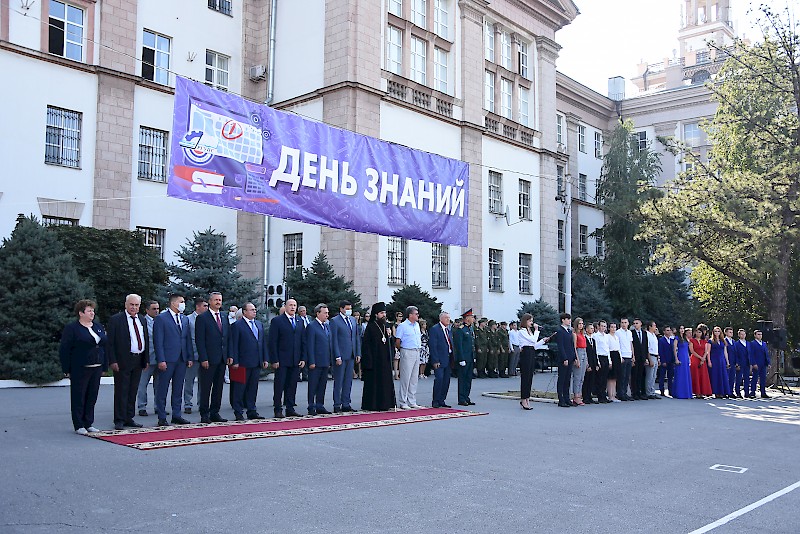 Первокурсников приветствовал ректор РГУПС, д.т.н., профессор В.Д. Верескун. Со словами напутствия студентам выступили почетные гости: заместитель Губернатора Ростовской области В.Н. Вовк, руководитель Южного территориального управления Росжелдора В.Н. Королев, Первый заместитель начальника СКЖД – филиала ОАО «РЖД» С.С. Чернов, президент РГУПС , академик РАН В. И. Колесникова, Председатель Дорпрофжел на СКЖД М.В. Пружина, депутат Законодательного собрания Ростовской области, директор по персоналу Ростовского вертолетного производственного комплекса ПАО «Роствертол» Г.В. Рябоконов, Епископ Таганрогский Артемий, викарий Ростовский епархии, начальнику отдела молодежной политики Администрации г. Ростова-на-Дону А. Н. Бганцев.