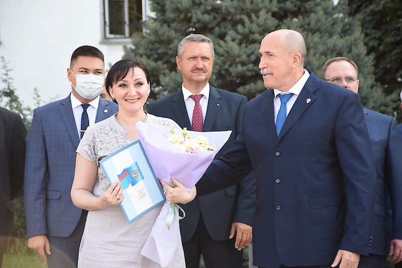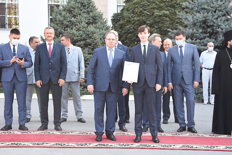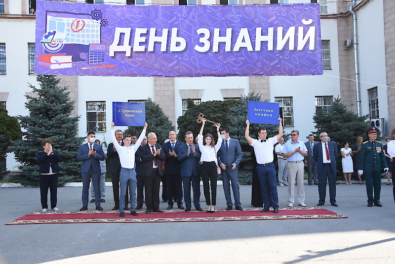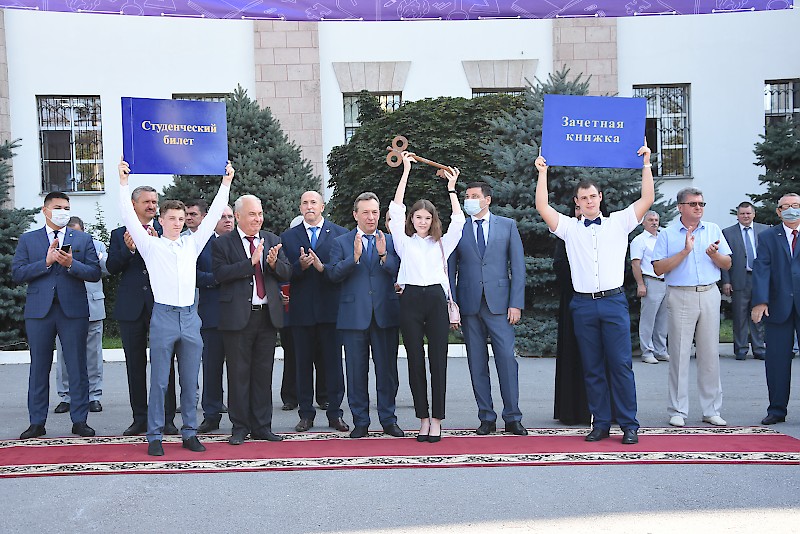Руководство вуза по традиции вручило первокурсникам символические атрибуты студенчества: «Студенческий билет», «Зачетную книжку» и «Ключ знаний».